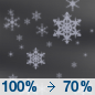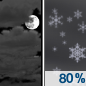 Temperature: 15°F Wind Speed: 7 mph Wind Direction: W Forecast: A chance of snow. Mostly cloudy, with a low around 15. Chance of precipitation is 50%. |