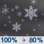 Temperature: 14°F Wind Speed: 5 to 12 mph Wind Direction: W Forecast: Snow. Mostly cloudy, with a low around 14. Chance of precipitation is 80%. New snow accumulation of less than one inch possible. |